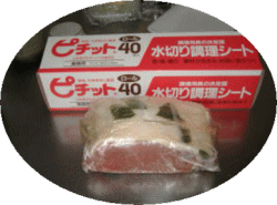 これが魔法のシートです。昭和電工の商品です。これがあるから出来るのです。1回目は1~2日でピチットシートに水分の多くが移ります。シートを取り替えます。次は3~7日で取り替えます。3回目は2~3週間で取替えるのですが、合計4週間程度で出来上がることが多いようです。燻煙はシートの交換のたびに1時間程度かけます。チップはかるく大さじ2~3程度です。 |