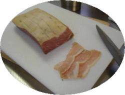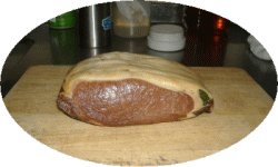適度な脂肪のロース肉(モモ肉も可)に約3~5%の塩をハーブと混ぜて全体に擦り込む。ラップをかけて冷蔵庫で一晩寝かします。肉が崩れない程度に竹串などで突き刺すと塩の回りが速いかも